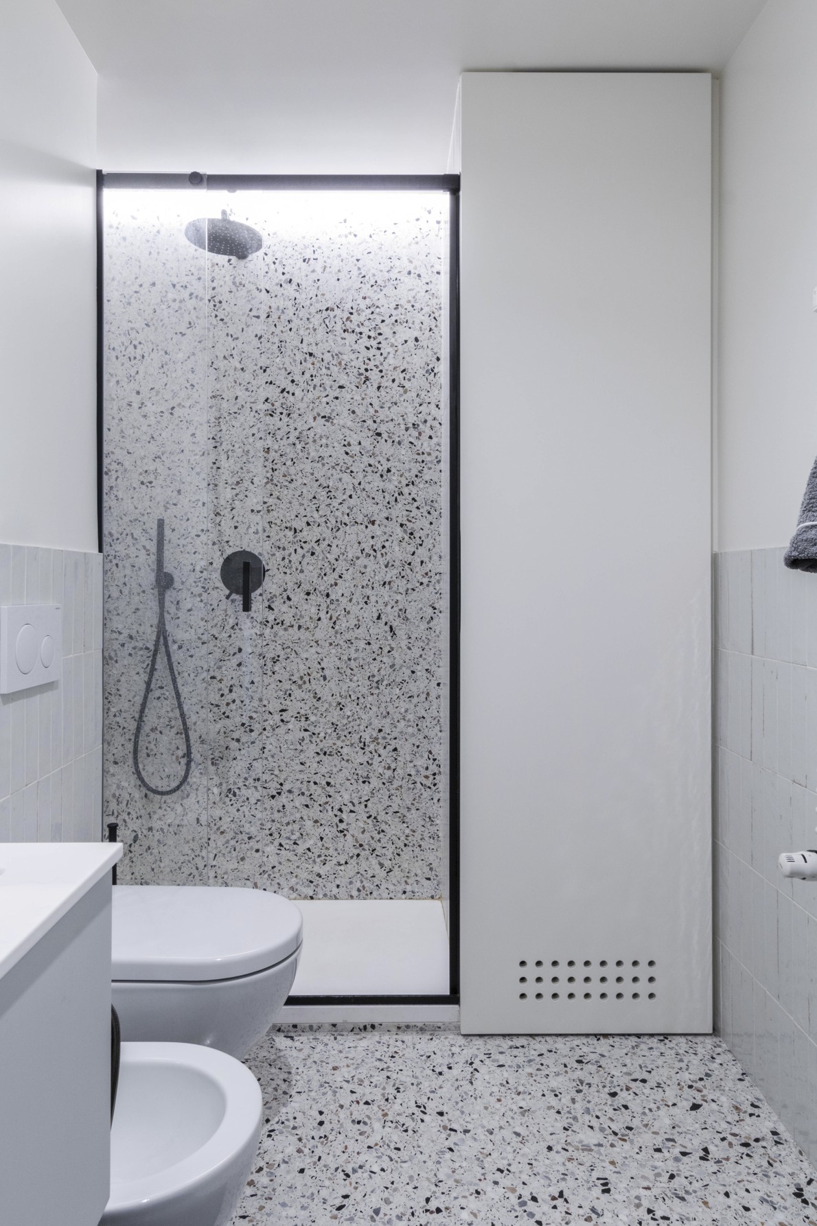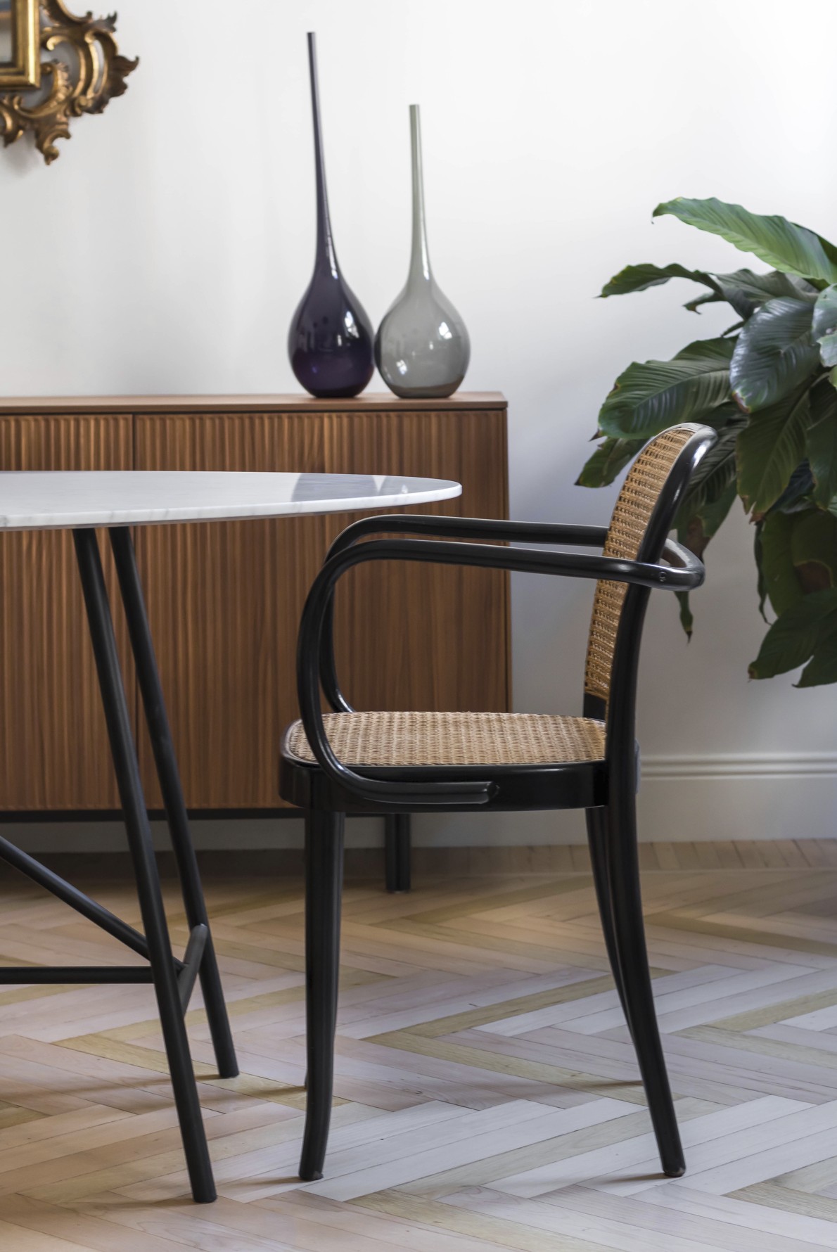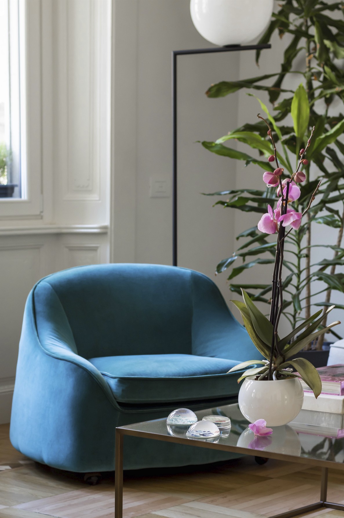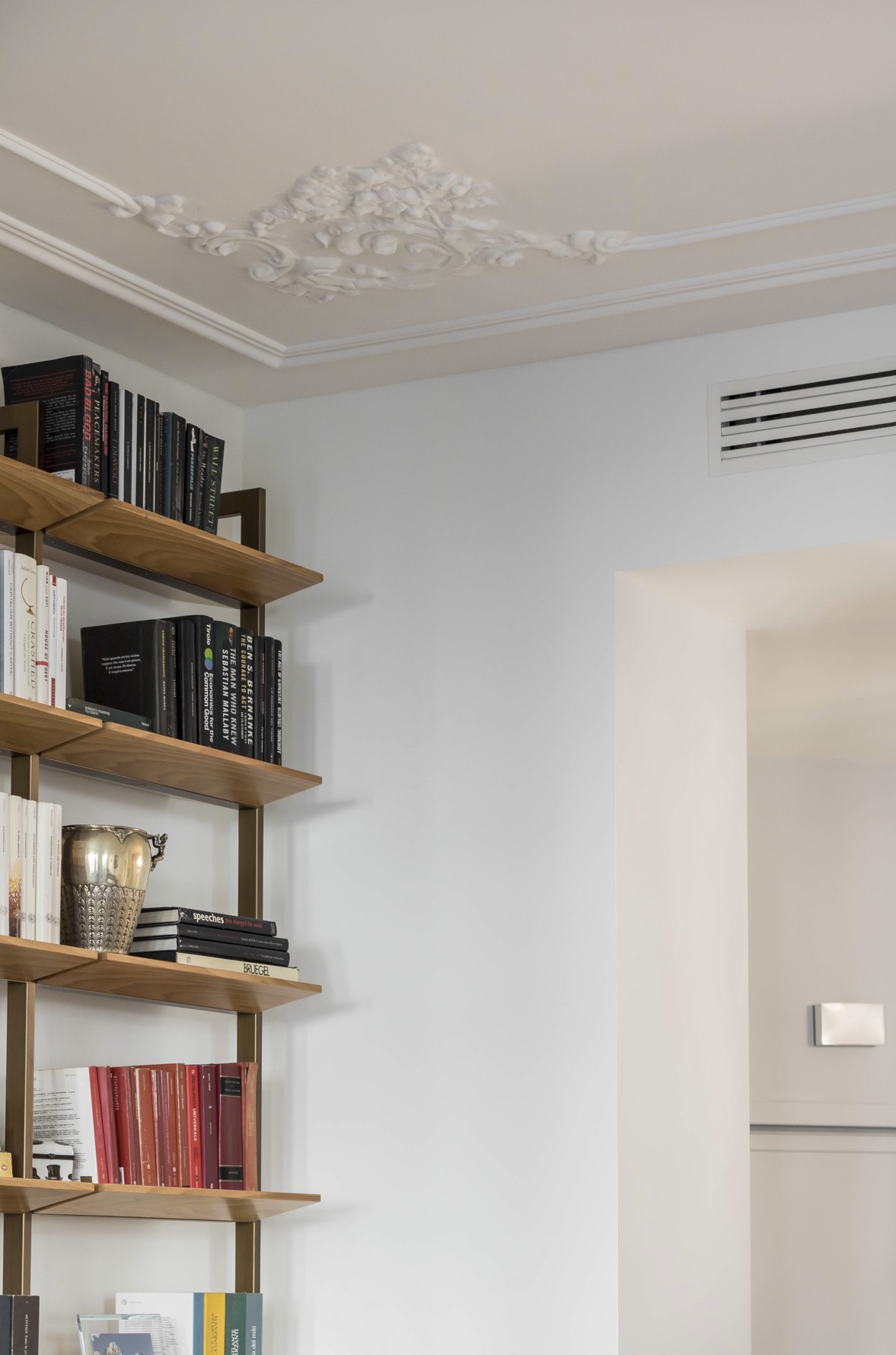 Un appartamento elegante e luminoso che unisce dettagli storici e gusto contemporaneo. Pavimenti a spina di pesce, boiserie e modanature dialogano con arredi di design e tocchi classici, creando spazi conviviali e raffinati. Bagno minimale in terrazzo alla veneziana e zona notte intima con toni verde polvere completano un progetto armonioso e funzionale.