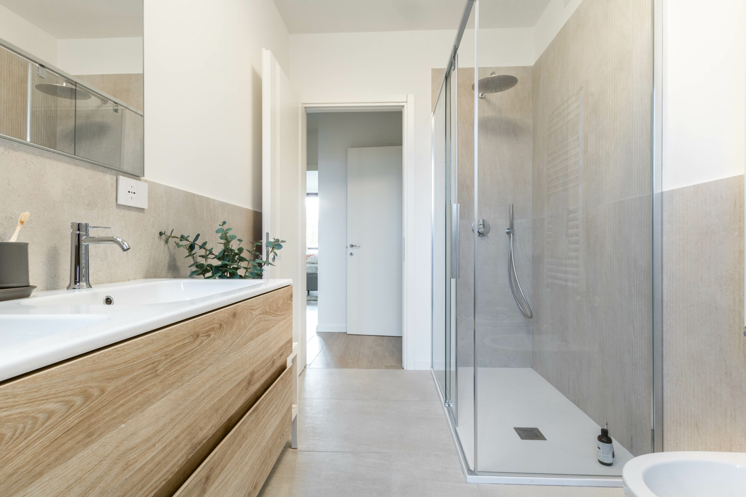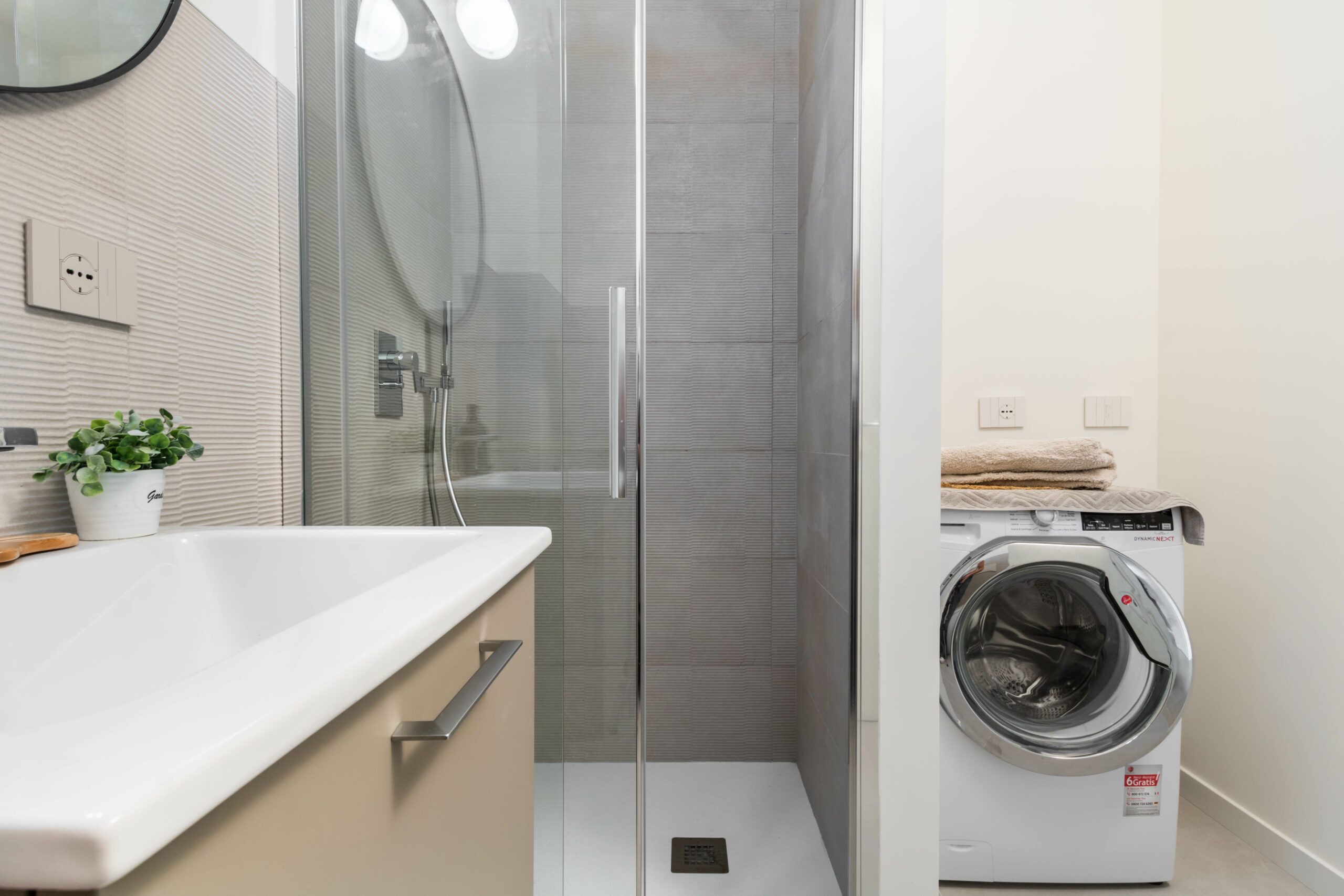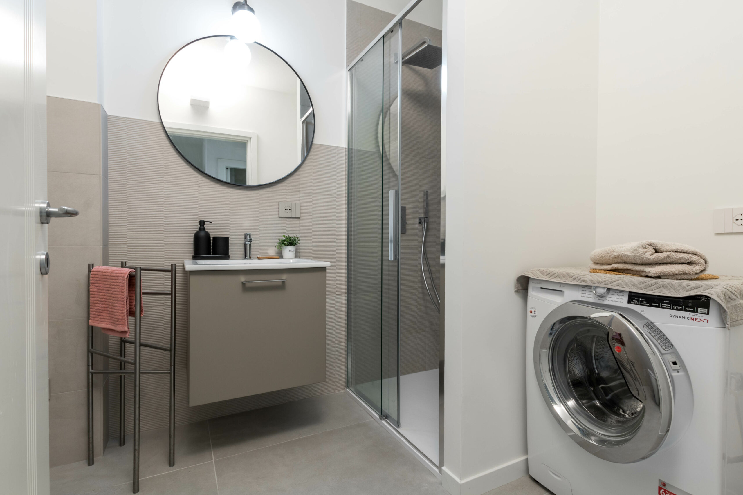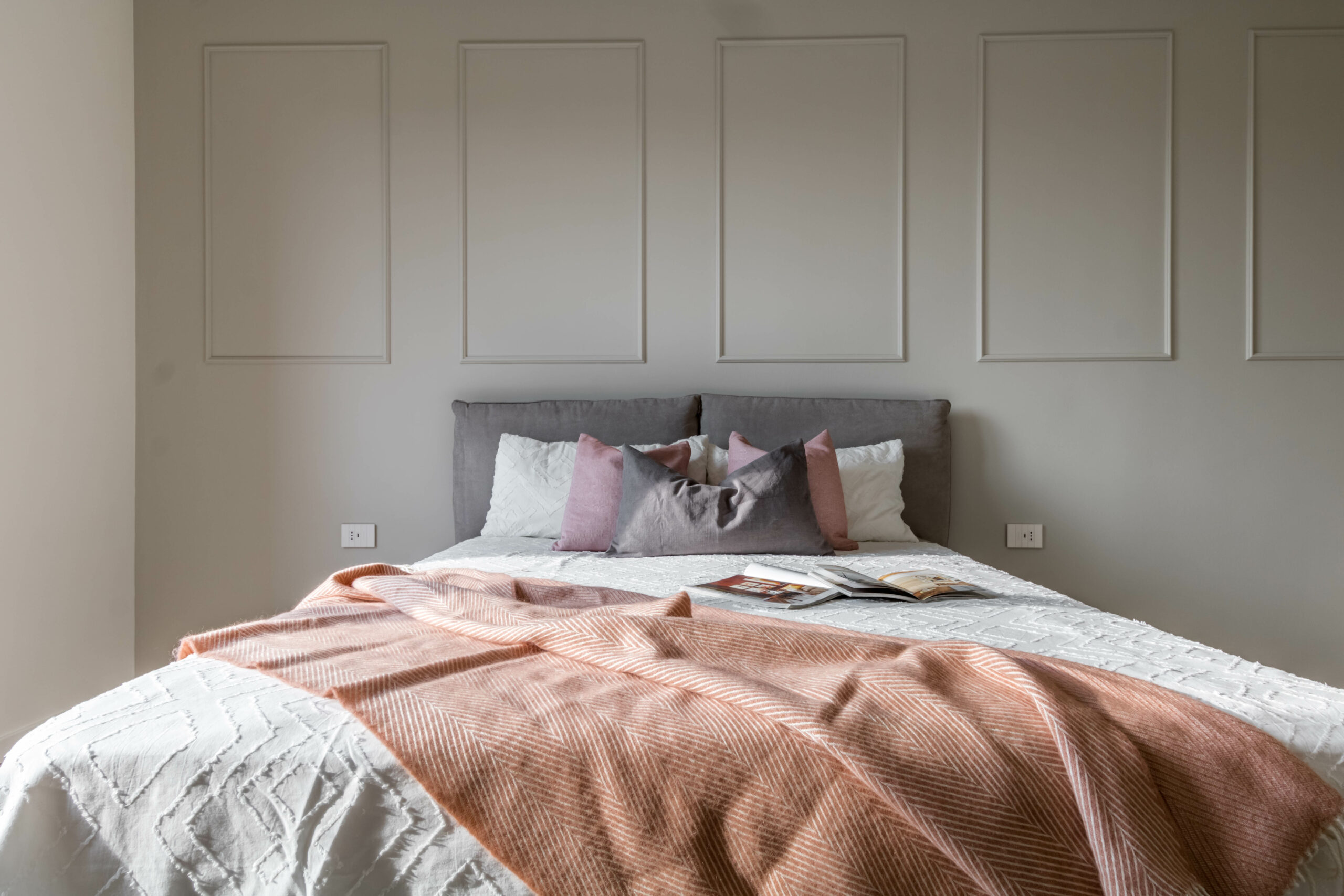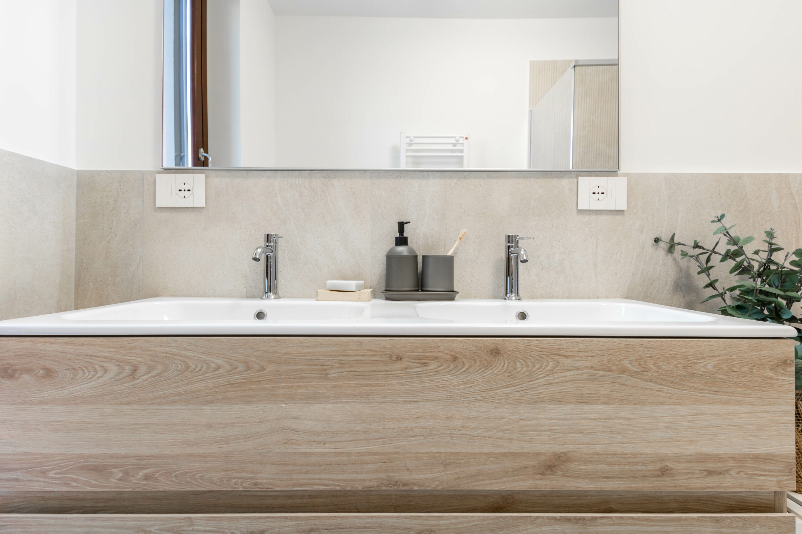 La ristrutturazione ha dato vita a spazi luminosi ed eleganti, caratterizzati da boiserie neutre, pavimenti in gres effetto legno e dettagli dal design essenziale. Nella zona notte prevalgono toni morbidi come grigio e cipria, mentre una parete verde salvia personalizza la camera secondaria. Il bagno unisce legno chiaro e rivestimenti sabbia per un effetto naturale e raffinato. Un progetto che coniuga sobrietà, calore e funzionalità contemporanea.